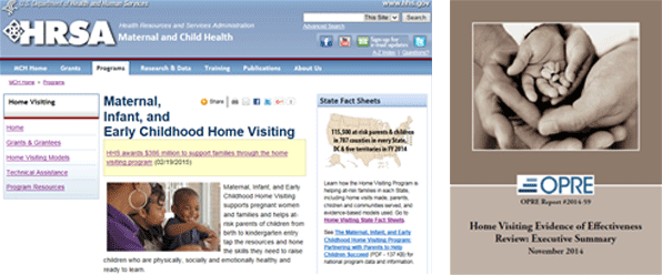 미국 정부는 산전 및 조기 아동기 가정방문 프로그램을 확대하기 위하여 산모-영아-조기아동기 가정방문(Maternal, Infant, and Early Childhood Home Visiting, MIECHV) 이라는 정부의 재정투자 정책을 만들었습니다.